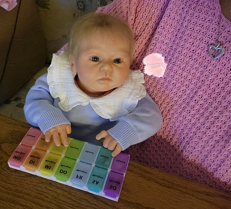 Am heutigen Samstagabend machen wir es ruhig. Mia Rose hat mir beim Befüllen meiner Tablettenbox geholfen. Sie fand es sehr interessant, jeden Tag eine andere Farbe zu sehen, und Amy Rose, das süße kleine Mäuschen, schlummert friedlich in meinen Armen.