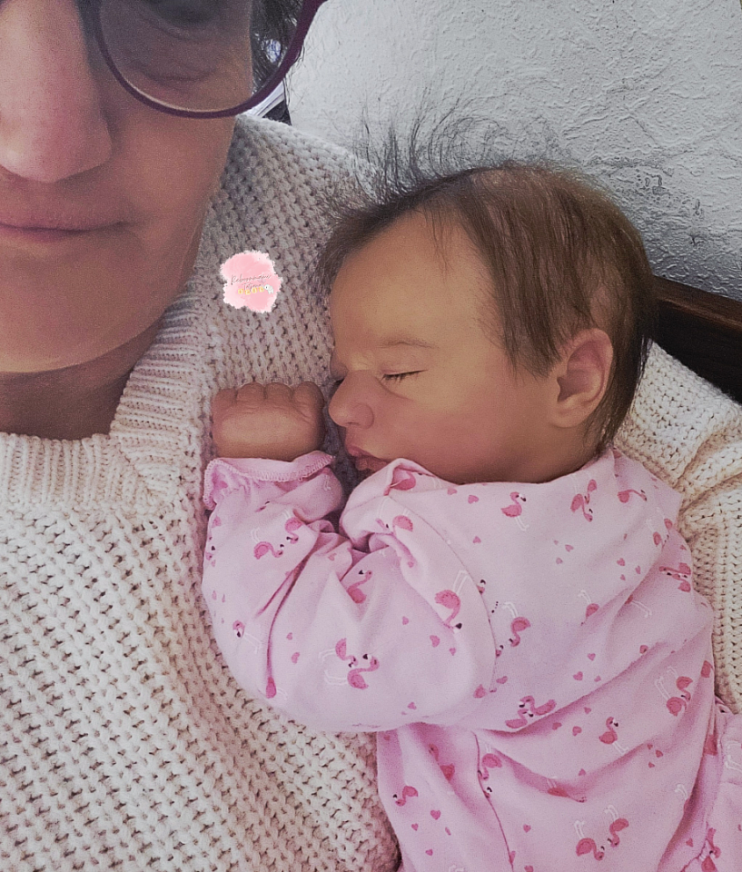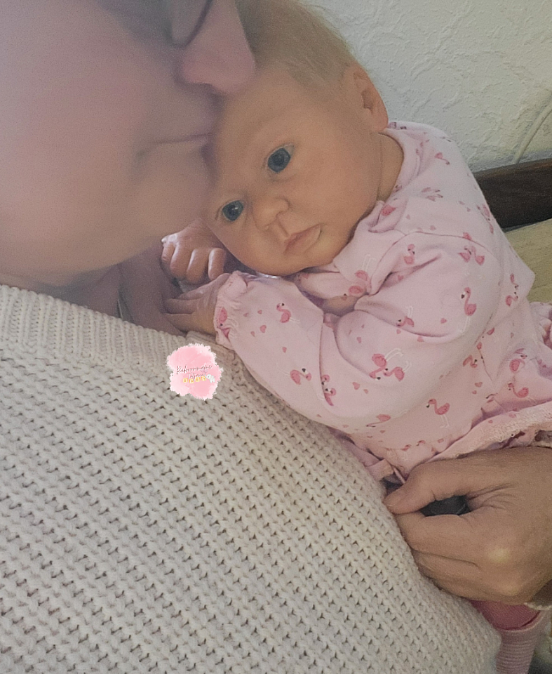 Mia Rose beobachte, was mein Schatz da macht. Die kleine Amy Rose schläft wieder, nachdem wir unsere Flasche bekommen haben, aber Mia Rose putzmunter und soooo neugierig!